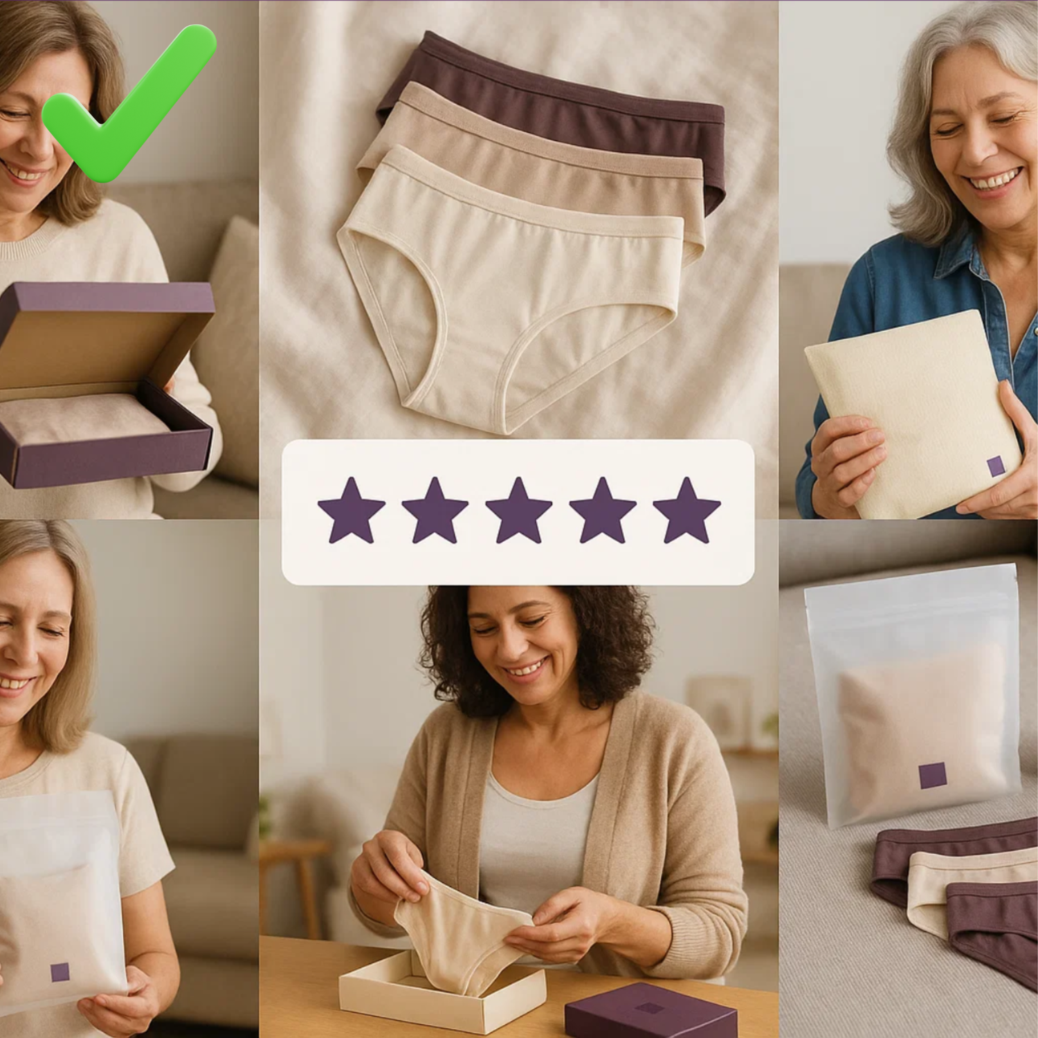 Nein, Oveanu trägt sich wie ganz normale, bequeme Unterwäsche. Kein Rascheln, kein steifes Gefühl. Einfach weich, flexibel und diskret.