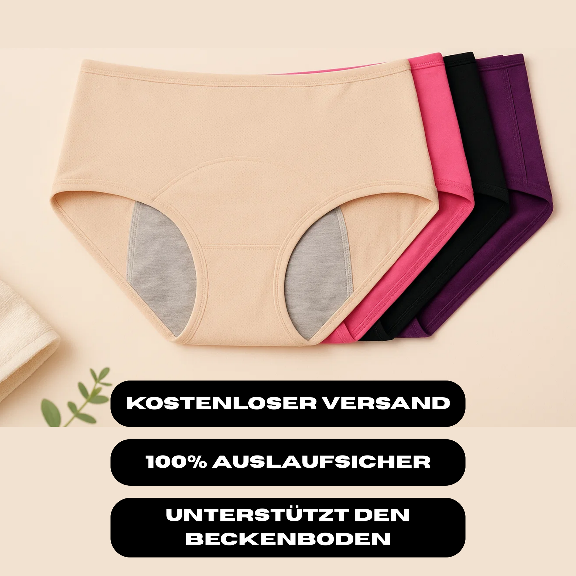 Unsere diskrete Technologie verhindert zuverlässig Auslaufen, sitzt bequem wie ein Everyday-Slip und gibt deinem Beckenboden gleichzeitig sanfte Unterstützung.