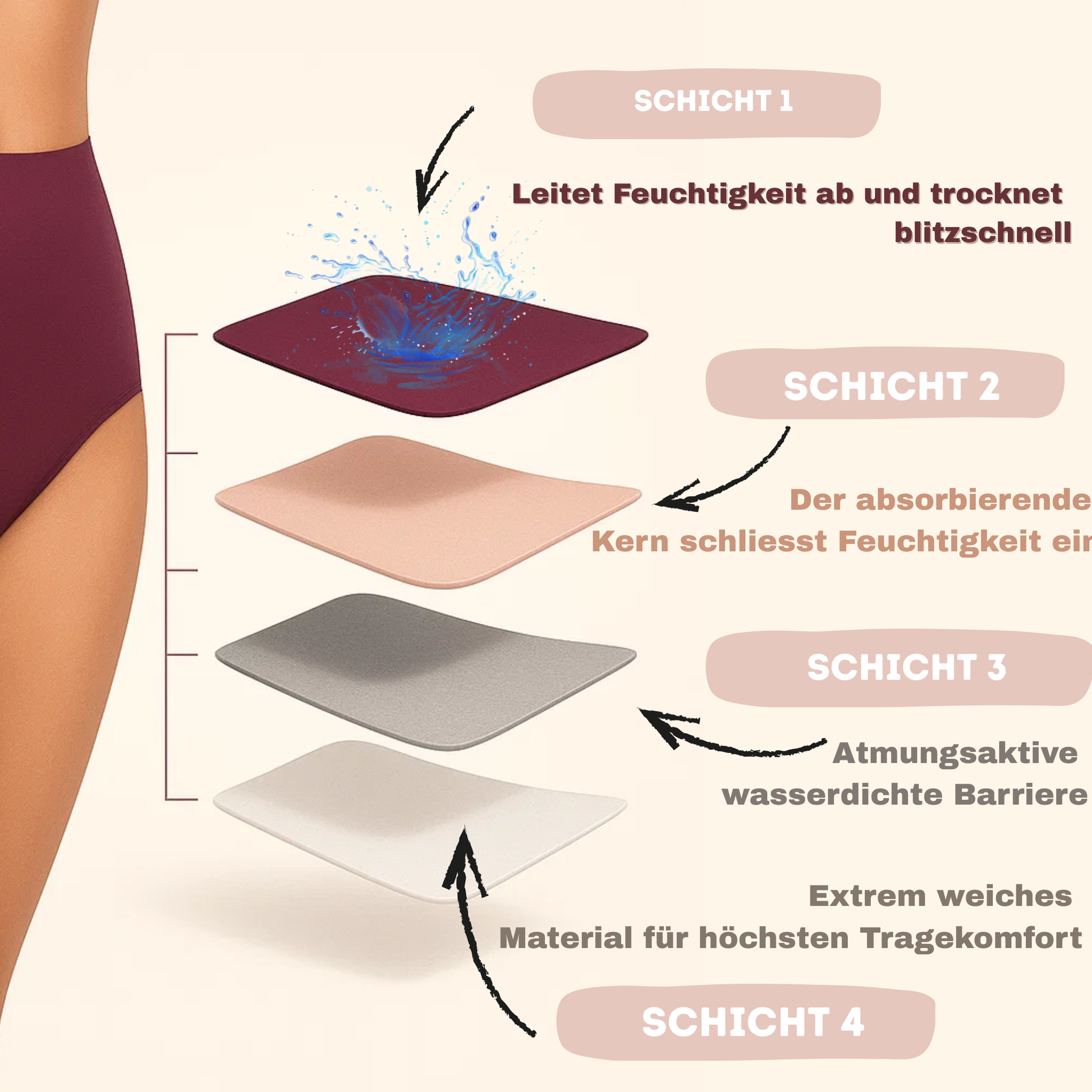💡 Tipp: Dank der dehnbaren, nahtarmen Materialien passt sich DryGuard™ perfekt deinem Körper an – für zuverlässigen Auslaufschutz, unsichtbaren Sitz und maximalen täglichen Komfort. 😊